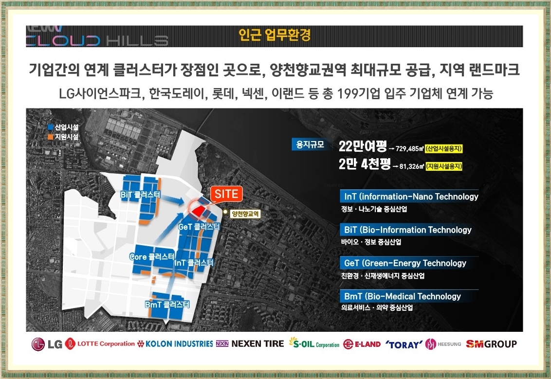 해당업무지구 주변에는 LG,코오롱,롯데이랜드,SM그룹,넥센타이어,S-OIL 등총 199개 기업이 입주해 있어 기술적,비즈니스적 교류의 활성화가 쉽고 네트워크를 활성화 할 수 있는 기업간 연계가 돋보이며 차세대 서울시 경제를 견인하는 전초기지가 될 것으로 보입니다.