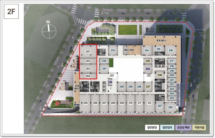 또한 205호~212호를 업무지원시설(상업시설)로 용도변경할 경우 건강검진센터 및 의원 등 자유업종으로 임대 가능합니다.